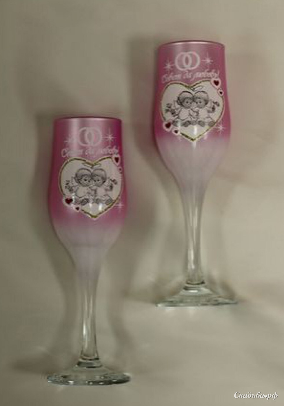 Бокалы свадебные «Сердце», розовые
