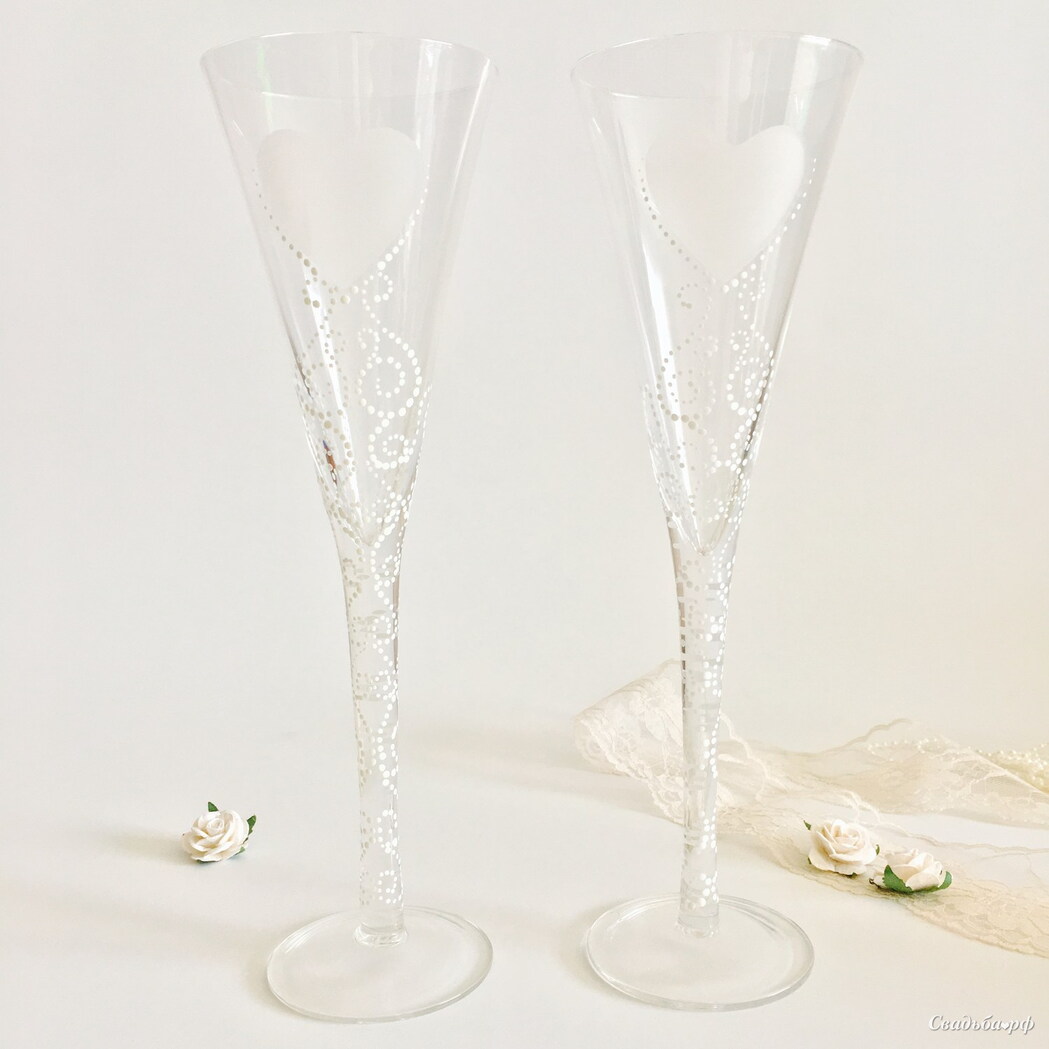 Бокалы для шампанского(комплект-2шт.), декорированные точечной росписью.