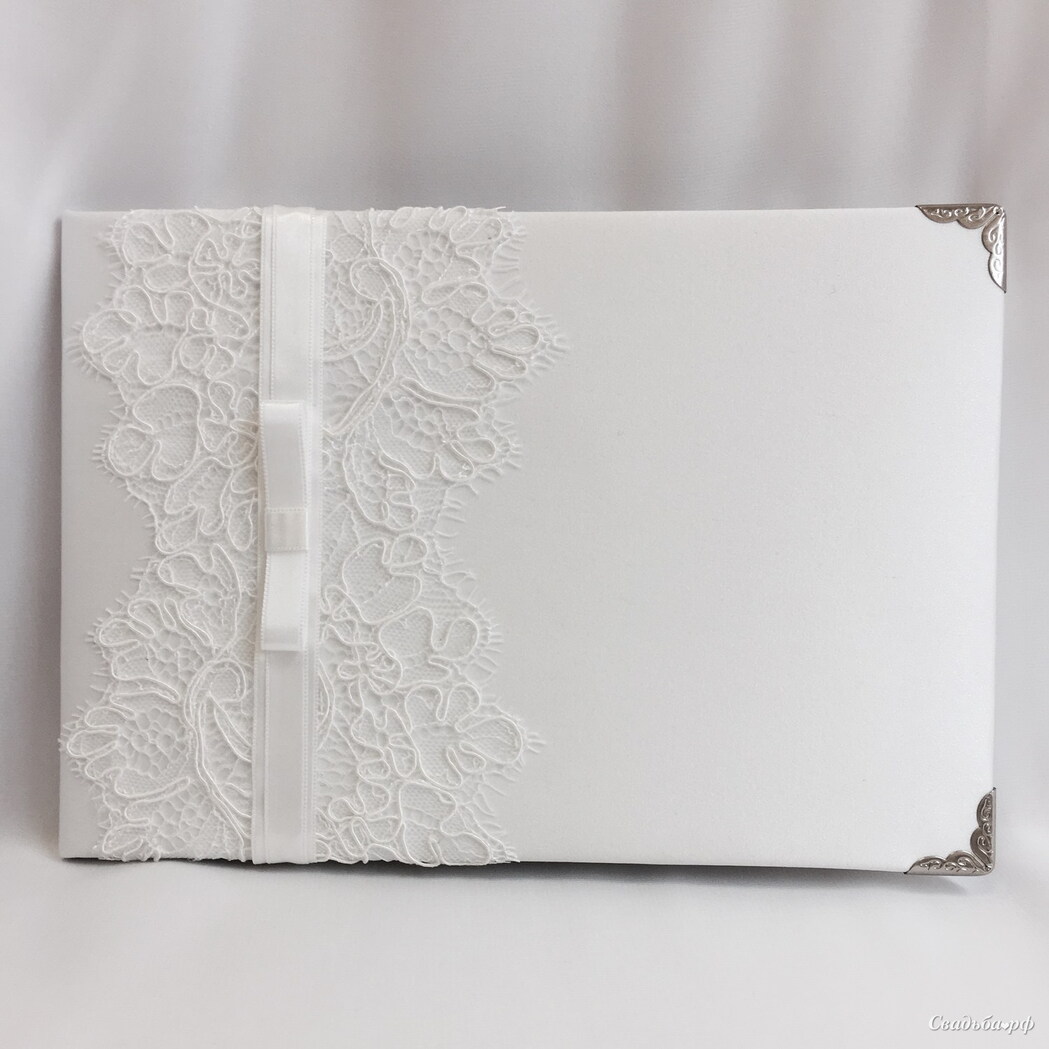 Книга пожеланий для гостей,декорированная кружевом и атласными лентами.