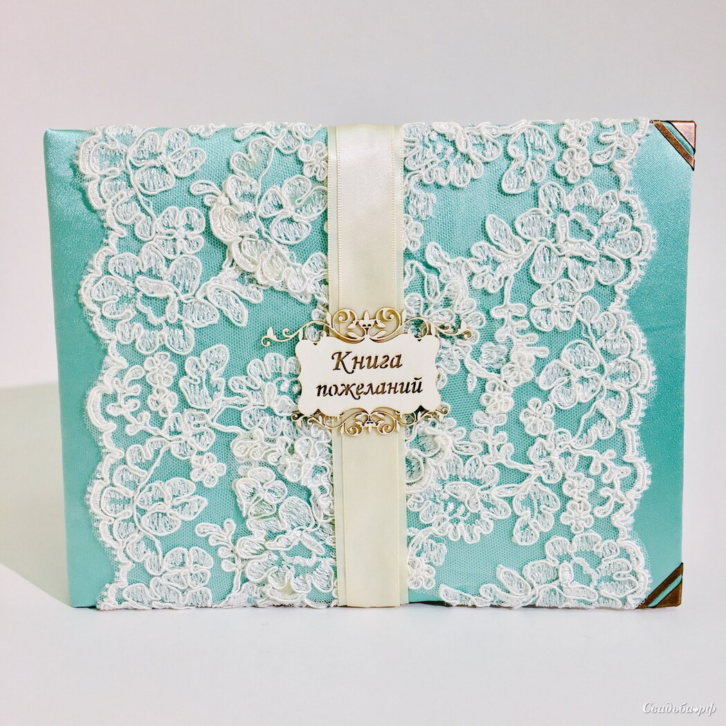 Книга пожеланий для гостей,декорированная кордовым кружевом,атласными лентами.