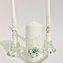 Комплект из трех свечей и трех стеклянных подсвечников,декорированный атласными лентами, кордовым кружевом и цветами.