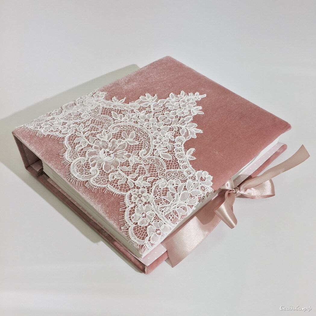 Фотоальбом «Персиковый бархат» с магнитными листами на кольцах подходит для любых фотографий (не более формата А4), декорирован бархатом, кордовым кружевом и атласными лентами
