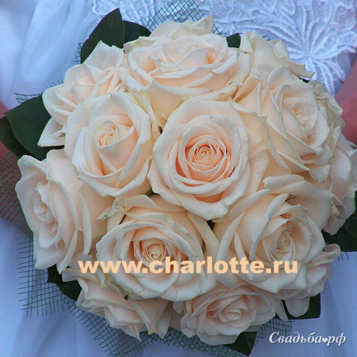 Цвет роз этого букета может быть различный: нежно-розовый, кремовый, желтый, красные и бордовые, но форма и стиль остается те же.
