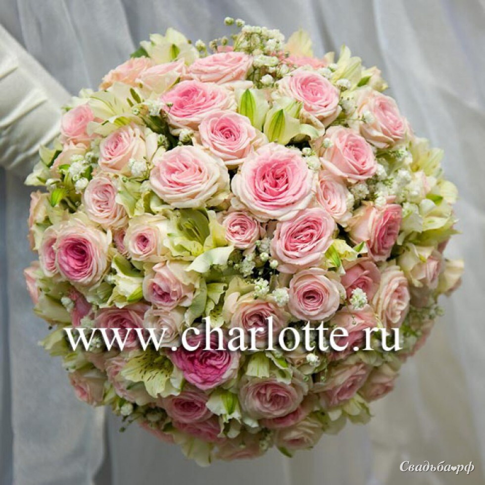 В составе букета: кустовые розы, альстромерия, гипсофила.