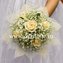 Букет, собранный на портбукетнице из кремовых роз, гипсофилы, в качестве декора использованы скелитезированные листья.