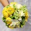 Букет невесты в желто-белых тонах из ранункулусов, фрезий, сирени, гиперикума с элементами декора на портбукетнице.