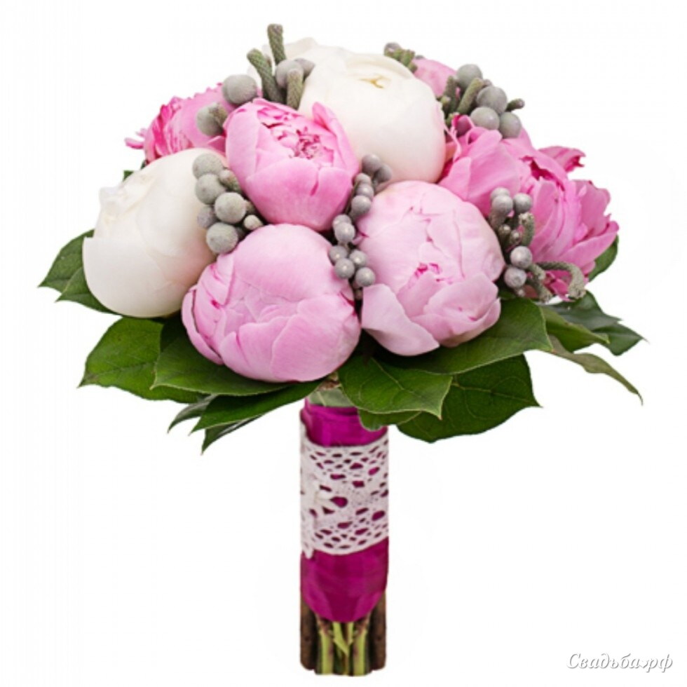 пионы (11), бруния, салал, лента атлас, лента хлопок.