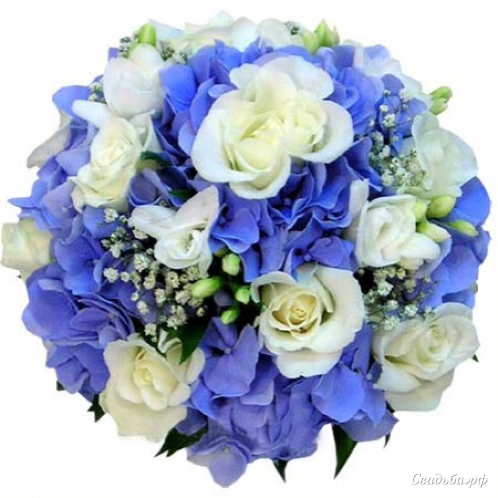 Состав: гортензия, роза, фрезия, гипсофила, рускус, портручка, дек. материалы.