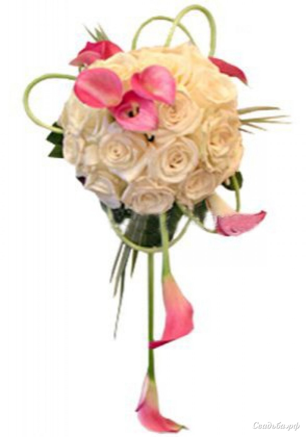 Состав: Букет на своих ногах, роза Аваланш 17шт., калла розовая 9шт, берграсс, рускус изр., декор.