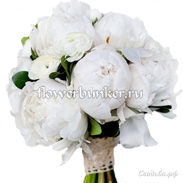 Состав: Пион белый 19шт., ранункулус белый 10шт.