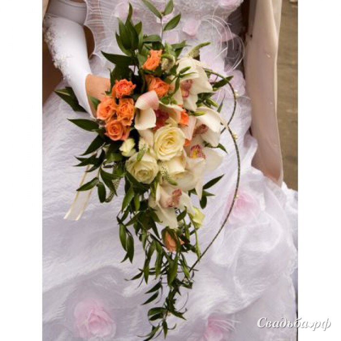 Состав: роза, роза кустовая, орхидея цимбидиум, рускус итальянский, вероника белая, берграсс, эустома, порт- ручка, декор.