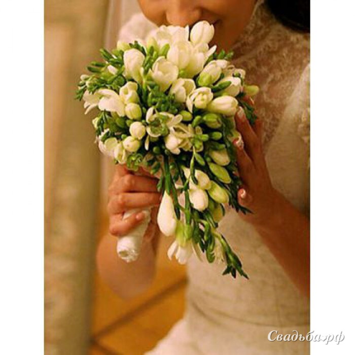 Состав: фрезия (35 шт.), рускус итальянский, порт-ручка, декор.