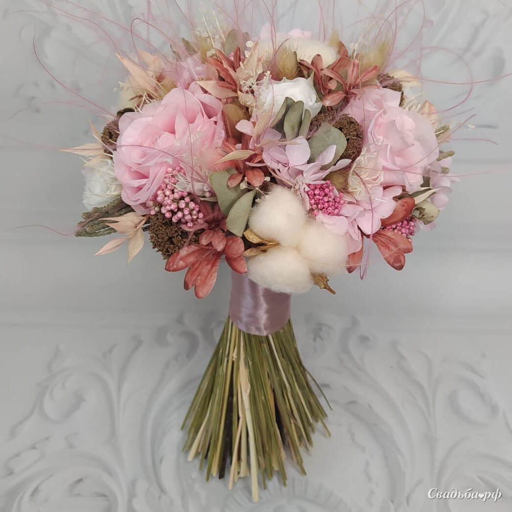 Букет невесты из стабилизированных цветов и сухоцветов.