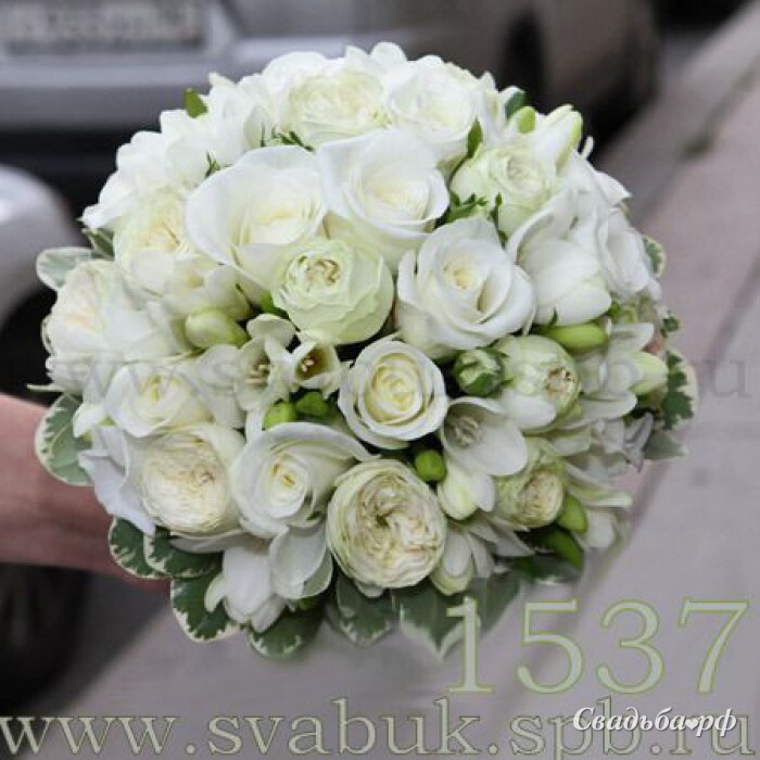 Свадебный букет из белой розы,белой фрезии,бело-молочного ранункулюса