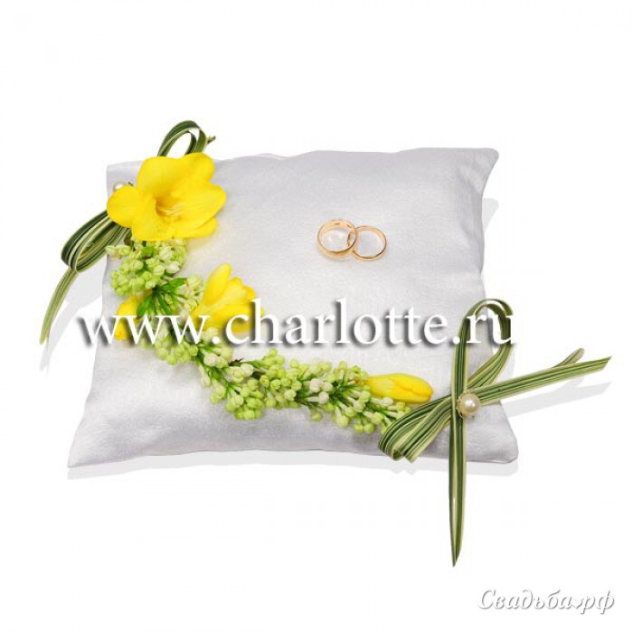 Подушка для колец с живыми цветами: фрезия, сирень.