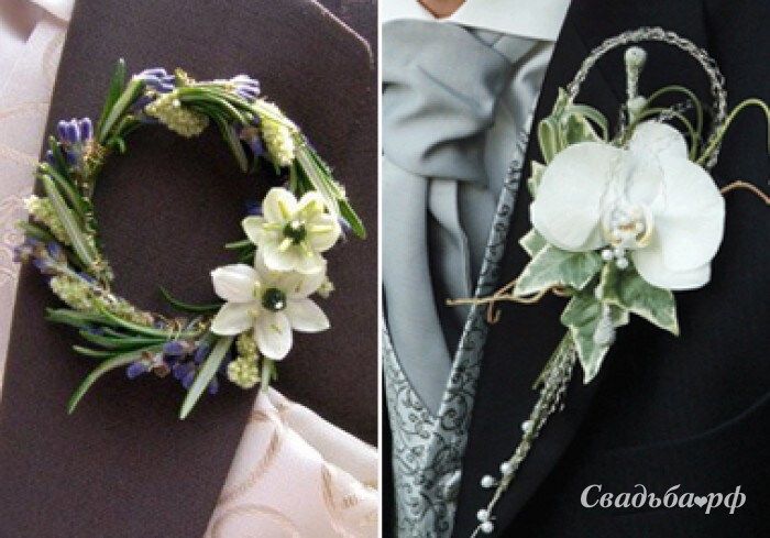 Вариант №2 Орхидея фалинопсис, берграсс, эвкалипт, декор, булавка