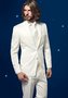 Элегантный свадебный костюм итальянского кроя. На две пуговицы, с двумя шлицами. Декоративный кант по широкому лацкану пиджака. Облегающий силуэт. В комплекте с жилетом и пластроном.