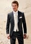 Элегантный свадебный костюм, итальянского кроя. На две пуговицы, с одной шлицей. Декоративная отделка по лацкану пиджака. Данная модель выполнена в различной цветовой и тканевой гамме.