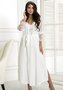 Длинный халат с длинными рукавами на кружевном широком манжете декорирован по плечам вышивным кружевом с бусинами.