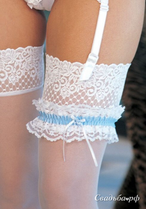 Кружевная подвязка с атласным бантом и ленточками. Упакована в мешочек с завязками.