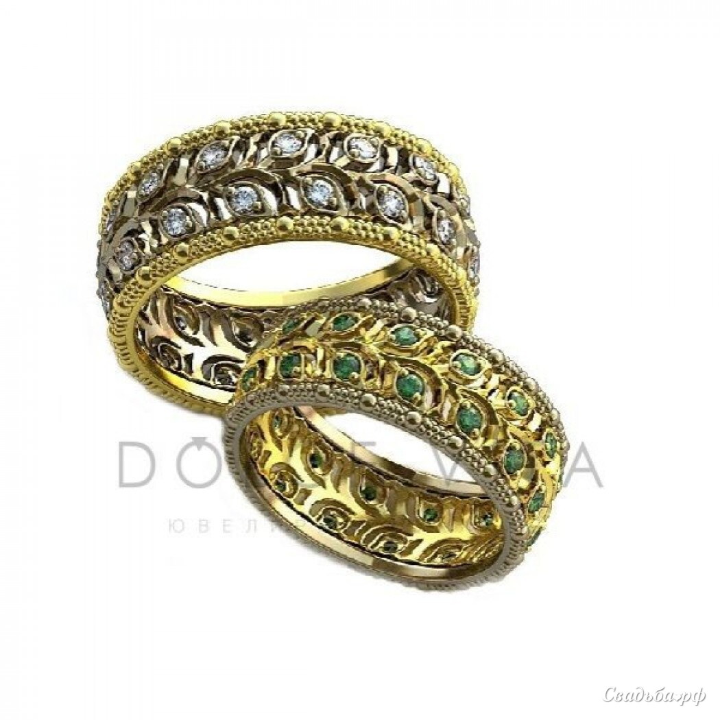 Кольца могут быть выполнены любой ширины, формы, цвета золота, а также из платины, палладия, серебра и с любым сочетанием камней.
