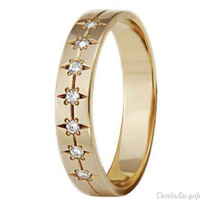 В кольце закреплены 7 бриллиантов диаметром по 1,5 мм. каждый. Возможно изготовление с большим или меньшим количеством камней.