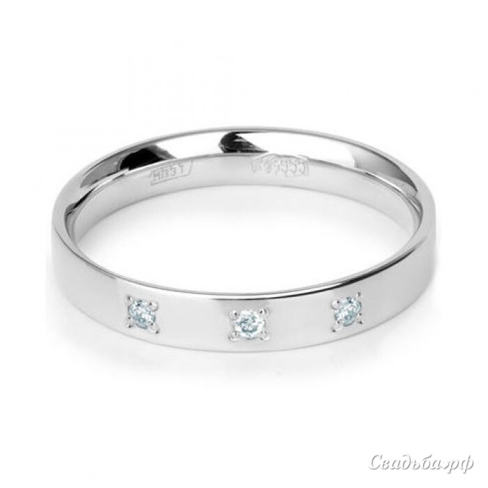 Обручальное кольцо из платины с 3 бриллиантами. Возможно изготовление с большим или меньшим количеством бриллиантов.