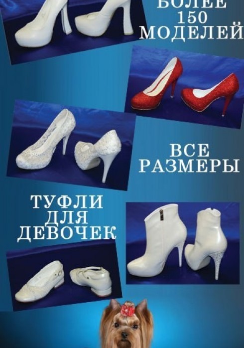 Здравствуйте! У нас вы найдете большую коллекцию обуви для невест. Более 150 моделей, ассортимент постоянно обновляется, размеры от 33 до 43 с половинками, высота каблука от 1 до 15 см. Цена от 500 до 4000 руб. Будем рады Вас видеть по адресу: м. Купчино Балканская пл.5 ТК Балканский-5 маг N445, мы работаем без обеда и выходных с 10.00 до 22.00