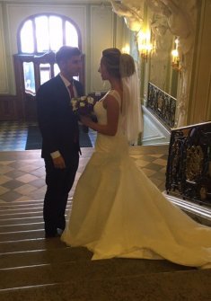Продаю изысканное платье, цвет айвори, силуэт рыбка. Очень красивое декольте и полуоткрытая спинка. Есть шлейф, который пристёгивается на поговицы сзади. Платье расшито дорогим кружевом. состояние отличное, после химчистки. Больше фото могу скинуть в wats up или viber.