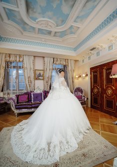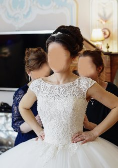 Очень пышное Итальянское платье с двумя подъюбниками! Красиво вышито кристаллами! длинный шлейф! Шилось на заказ! Второго такого нет! Небольшой торг уместен!
