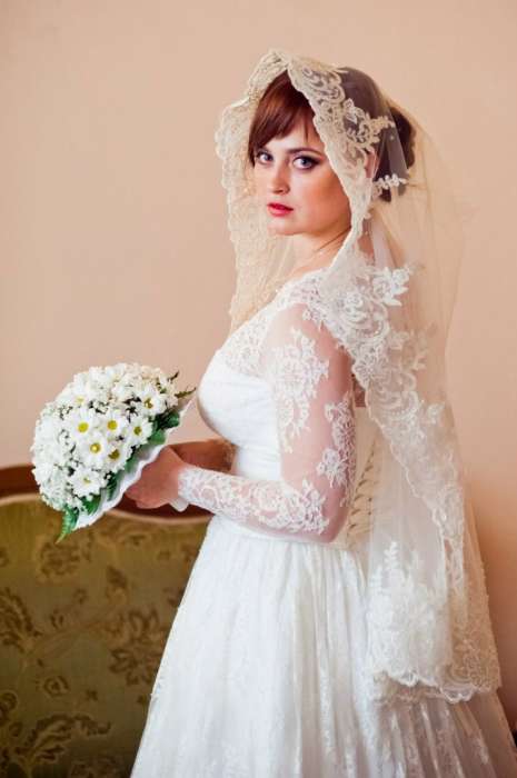 Платье шила под заказ, фату тоже. Платье из очень нежного и невесомого кружева, цвет айвори. На поясе украшение из серебряного кружева ручной работы (заказывала отдельно), есть небольшой шлейфик. Платье шила в декабре 2015 за 30 тыс. Фата тоже сделана под заказ, ручная вышивка бисером и кружевом, обошлась 5 тыс. Продаю все вместе за 15 тыс. Платье на корсете, так что на практически любую фигуру и размер груди сядет идеально от 44 до 48 р.
