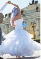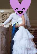 Размер 38-42. Носила всего три часа. К платью есть туфли 36 размера.