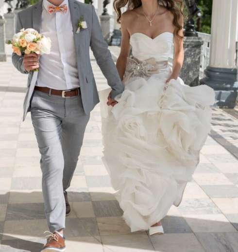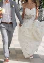 Свадебное платье Perla Sposa - шикарное и невероятно удобное. Покупалось в свадебном салоне весна. Цвет - молочный. Европейское качество материала и кроя приятно удивит. Кольца не нужны, что значительно облегчает движения. Платье на рост 160-170 с каблуком. Размер от 40 до 44 за счёт шнуровки. Бант при желании можно снять или заменить на ленту нужного цвета. Платье после химчистки.