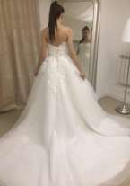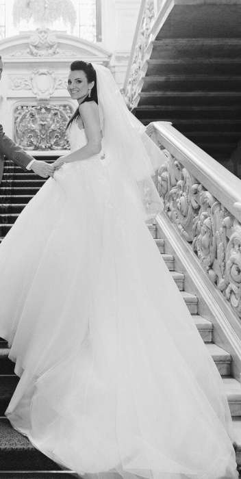 Пышное платье, со шлейфом, корсет украшен 3-d цветами. Платье легкое и очень удобное. Цвет айвори. Фата и кринолин в подарок.