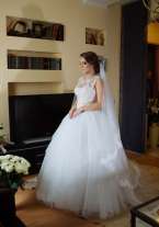 Цвет Айвори, в идеальном состоянии, после проф химчистки. В подарок фата 160 см и кринолин 5 колец
