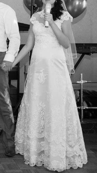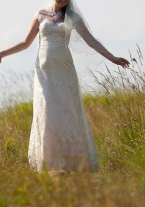 Очень нежное платье, из кружева и бисера, без корсета, есть кружевной шлейф.
