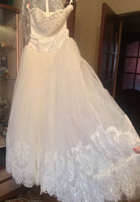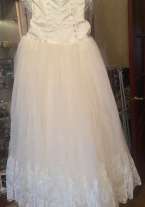 Продаю свадебное платье. Цвет айвори, после хим. чистки, все украшения целы, кринолин на 3 кольца в комплекте. Низ вышит кружевом, корсет вышит красивым бисером под жемчуг.