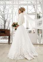Шикарное платье в винтажном стиле! Кружево типа французского старинного "алансон". Платье продается вместе с фатой (прозрачная, длинная в пол), диадемой, шубкой. Платье покупалось дорого в свадебном салоне, надела 1 раз, на свадьбу, после химчистки, можно отдельно купить платье, без фаты, шубки и диадемы, это в подарок) Верхняя часть платья сделана корсетом, само платье расшито кружевом, подойдет на размер S,XS и при большом желании на M :) сзади платья небольшой шлейф, на рост 165-168 + каблук