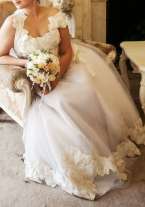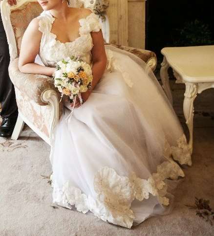Невероятной красоты свадебное платье ручной работы дизайнера Яниса Чамалиди. http://ianischamalidy.com/ Асимметричное платье с одним спущенным плечиком, обшитое белыми цветами по лифу и подолу. Шила по заказу для самого счастливого дня в своей жизни! Так и случилось:) Торг уместен. Готова доставить в Москву.