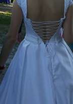 Платье в хорошем состоянии, сверху кружева, юбка-атласная, силуэт А, не сильно пышное . спину можно оставить открытой (как на картинке), а можно закрыть (кассет имеется). В эту стоимость включён кринолин - два кольца, чехол для перевозки платья. Торг возможен).