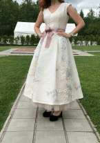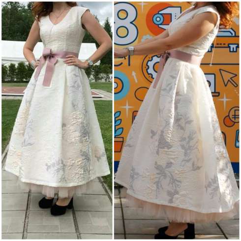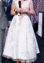 Платье из купонного жаккарда, сшитое в ателье люкс класса PRIVATE CLUB, в идеальном состоянии. Гуляло один раз. Подходит как для свадьбы, так и для вечернего выхода. Соответствует всем модным тенденциям - постельные цвета, 3D рисунок, нижняя юбка из фатина, подчёркнутая талия. 42-44 размер. Продаём по цене ткани.