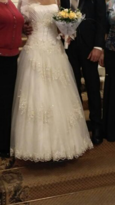 Очень красивое Свадебное платье с вышивкой, надето один раз. Со шлейфом, но не очень длинным, шлейф можно поднять, закрепив на пуговицу под жемчуг. Есть отстегивающиеся лямки. Продаю вместе с фатой и кринолином на 2 кольца. Цвет айвори. Платье в отличном состоянии, после химчистки, как новое!