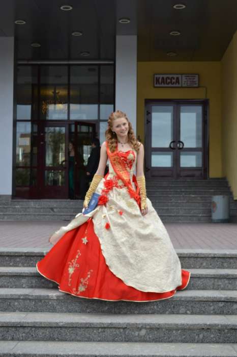 Продам выпускное платье на корсете, подойдёт как для очень худеньких, так и для плотных девушек (размер 40-46); на рост не выше 165 см! Надевалось всего два раза (один раз для мероприятия, второй - для фотосессии). В идеальном состоянии! Очень насыщенный цвет, красивое сочетание красного и золотого. В комплекте отдаю перчатки золотистого цвета (как на фото) и пышный подъюбник. Перед покупкой можно подъехать и померить.