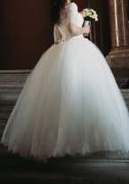 Свадебное платье цвета айвори. Регулируется благодаря корсету со шнуровкой. К платью прилагается чехол. Кринолин (кольца) в подарок.