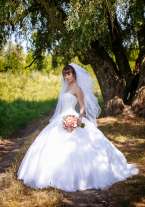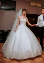 Свадебное платье To be bride классическое с небольшим шлейфом Сверкающий корсет и очень пышный низ из невесомого фатина без декора. Небольшой шлейф. Для удобства под подолом петля под руку для подбирания шлейфа. Платье после хим.чистки. Торг.