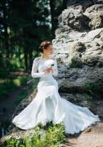 Свадебное платье "русалка" цвета айвори, выполненное из тонкого итальянского кружева ручной работы. Подшито под рост 174 см без каблуков, имеется петля для шлейфа. Торг уместен. Чехол под платье в подарок.
