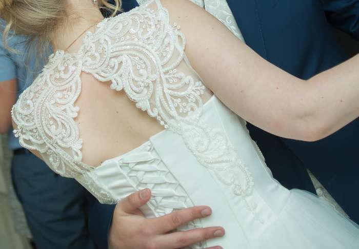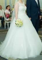 Cверху украшено вышивкой, очень красивое кружево. На меня на улице люди оборачивались, говорили "Красивая невеста") Юбка пышная - насколько, будет зависеть от количества колец. Вживую смотрится даже лучше, чем на фото! Я 46 размера, подойдет и на 44, и на 48. Его можно и больше утянуть, и меньше. Вообще очень удобно утягивается (такая форма корсета) - можно регулировать талию)) В комплекте для утяжки и лента, и шнурок. Надо приезжать и смотреть!)) Возможен торг.