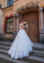Очень нежное и элегантное платье от элитной итальянской марки "Nora Naviano Sposa". Пышное платье с закрытыми кружевными плечиками и спинкой. V-образный узор из кружев в области декольте повторяет прозрачная спина, застегивающаяся на атласные пуговки. Тренд этого сезона - пудровый цвет (кружево и декор цвета айвори на основе пудрового цвета)! Застежка - змейка, пуговицы, материал - кружево, фатин, атлас. Платье после химчистки. Находится в г.Выборге.