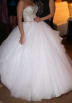 Платье свадебное. Одевалось один раз в ЗАГС. Верх платья инкрустирован стразами Сваровски. Платье шилось на заказ. Под платье идет юбка кринолин, одевается по желанию. Так же в подарок к платью идет второе маленькое белое платье, на переодевание в ресторане. И ботинки, так же инкрустированные стразами Сваровски, если подойдут по размеру (размер 36-37). Предоставляется помощь в вывозе по СПб и ближайшей Лен. Области. Все обговаривается. Торг уместен при личном осмотре.