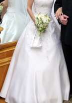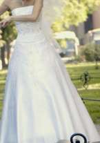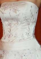 Платье с вышивкой (корсет с юбкой), есть не большой шлейф - пристегивается. К платью в подарок - сумочка.